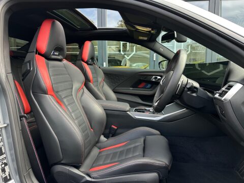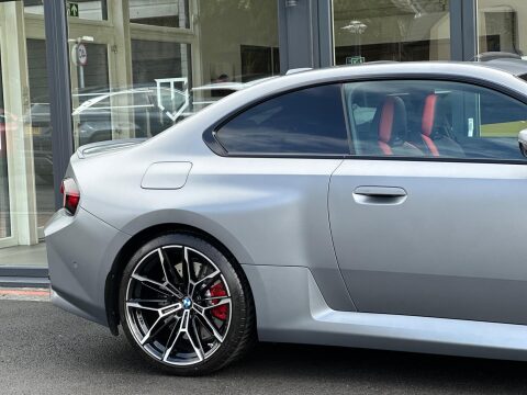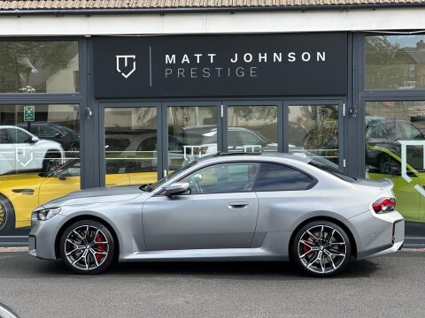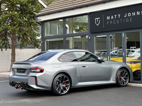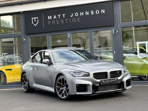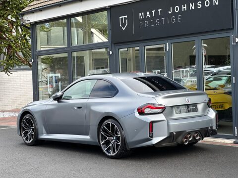 Every so often, a car comes along that truly transcends expectations and this is one of them. A nearly new, facelifted M2 with a highly individual specification that sets it apart from almost every other example on the market. From what I can see, there are only a handful of cars even worth considering and among them, this is the one to buy, for all the right reasons. The previous owner configured the car without any concern of what the list price would amount to. Taking into account the upgraded alloy wheels, cost optional Frozen Grey Paintwork, Sliding Panoramic Sunroof and the costly Quad Tailpipe Titanium Exhaust System, the brand new price totalled to just shy of £80,000. Now, having being registered in February of this year, you will be saving circa £20,000 on a 7 month old car with just 4,000 miles on the clock. With this being the facelifted M2, the car benefits from a few new desirable features and a performance upgrade. Highlight features include but are not limited to; Sliding Panoramic Sunroof (Upgrade) I Titanium Quad Tailpipe BMW Performance Exhaust System (Upgrade) I Red Brake Calipers (Upgrade) I Frozen Grey Paintwork (Upgrade) I Black with Red Highlight Vernasca Leather (Upgrade) I Heads Up Display I Rear View Camera I Harman/Kardon Surround Sound Audio System I High-gloss Shadowline Exterior Trim I Folding Wing Mirrors with Auto-dimming I M Sport Seat Belts I Illuminated M Accents I Heated Steering Wheel I Heated Seats I M Sport Seats I Electric Front Seats with Driver Memory Function I Ambient Lighting I Lumbar Support I Driving Assistant I Parking Assistant I High-Beam Assistant I M Sport differential I Adaptive LED Headlights I Storage for wireless charging I M Adaptive Suspension I Live Cockpit Professional I Comfort Access and much more. Furthermore, the car received its running in service when due and wants for nothing. This car is just incredible and if you are in the market, this HAS to be the M2 on your driveway!