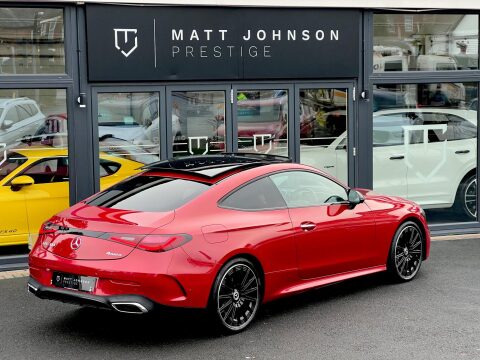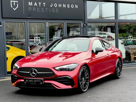 We worked very hard to ensure this sensational CLE was brought back to HQ. They say that colours make cars and has there ever been a more accurate example of this? This is is finished in the £925 cost option Patagonia Red and partnered with the equsite White and Black Nappa Leather. This is a one private owner car with total Mercedes Benz Agent Service History and the condition is second to NONE. This being a Premier Edition, the specification really is of the highest order, there is only one option which can be applied to the car as the Premier gets everything! Happily this car does have that one option which is the Driving assist package, which crucially includes active Radar Distronic Cruise Control. Other notable specification includes but is in NO WAY limited to: Panoramic Sliding Glass Roof, Burmester 3D Surround Sound Stereo, Head Up Display, Finger Print Scanner, 360 Degree Surround View Cameras, Massage Seats, Ventilated Seats MBUX Augmented Realty Navigation, AMG Carbon Fibre Trim Package and so, so much more. Please do not hesitate to call in connection with this exceptionally good Luxury Coupe.