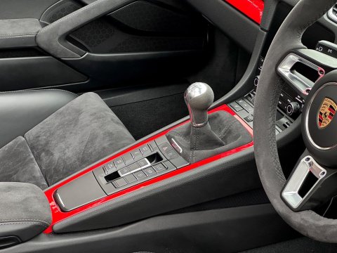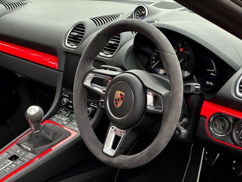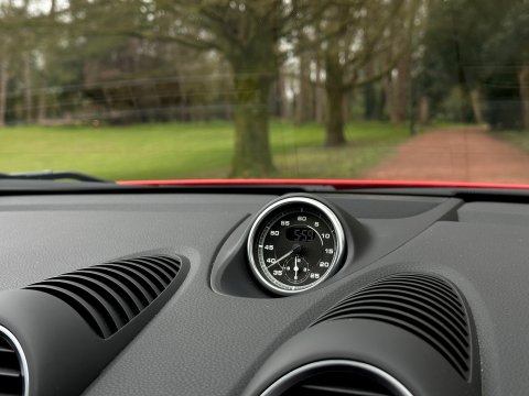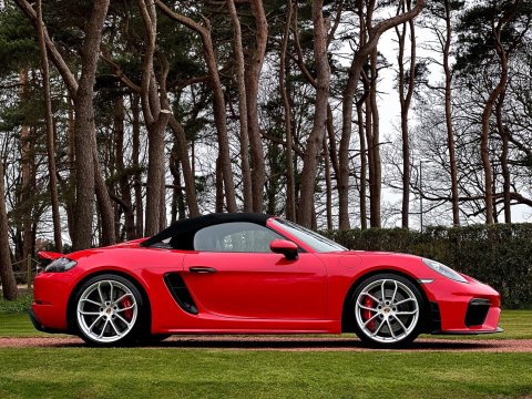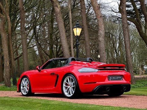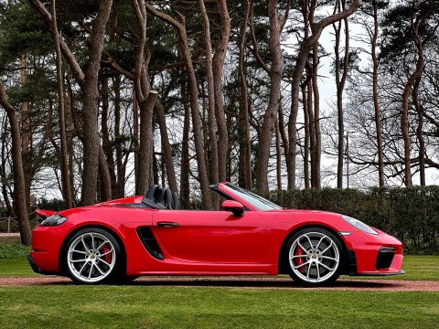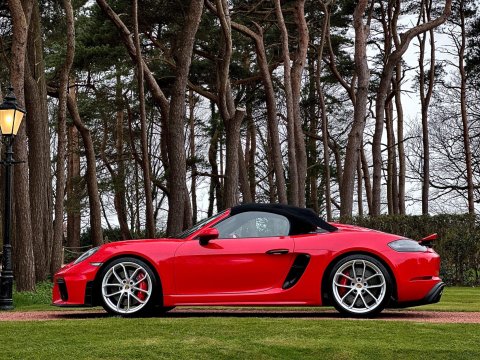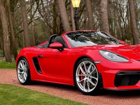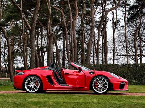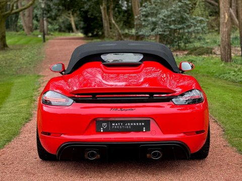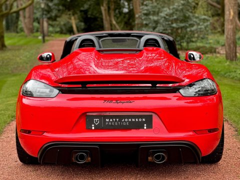An incredible example. We are thrilled to have been able to secure this beautiful Porsche 718 Spyder directly from the previous private owner. This car boasts an impeccable provenance, having had just two private owners from new and supported by a full main dealer service history. It has clearly been cherished throughout its life, with the previous meticulous owner ensuring it was garaged during the colder, wetter winter months. As part of our preparation, the vehicle will be returned to Porsche for its third scheduled service, due imminently. Offered in Guards red, with contrasting silver Spyder alloy wheel it looks incredible. The interior is every bit as special thanks to the rare Sports Carbon Fibre Bucket Seats which are more forgiving then the full buckets and offer heated seat function. Throughout the cabin there is bespoke red detailing and high end alcantara on the steering wheel, door cars and centre console. You really must see this car in the metal to appreciate the quality on offer, it is simply one of the best we have ever seen. The car was recently detailed and ceramic coated by a specialist and as a result the paintwork is immaculate. For more information, or to discuss your purchase of this incredible 718 Spyder, please get in touch today.
