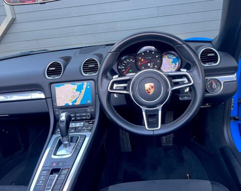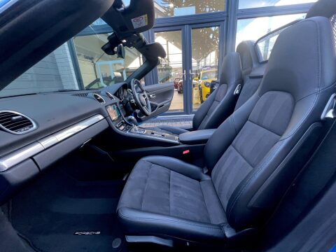 We are delighted to have taken in direct part exchange, from the incredibly careful previous owner, this beautiful 718. Finished in Shark Blue and Highlighted with a High Gloss Black Pack, visually this car is jaw-dropping. The car has been properly maintained and serviced by Porsche Centre Cardiff and wants for nothing. All consumables are in excellent order and this car is ready to be enjoyed. The specification is also wonderful, with a raft of factory upgrades. The list of ordered options reads as follows:Sport Design Package in Black High Gloss upgrade, 20 Inch Carrera S Alloy Wheel upgrade, PDK Transmission upgrade, Bi Xenon Headlights with PDLS upgrade, BOSE Surround Sound upgrade, Tinted Tailights upgrade, Roll Over Bars in Black High Gloss upgrade, Wheels Painted in Black High Gloss upgrade, PASM Porsch Active Suspension with 10 MM Lowering upgrade, Rear Wing Painted in Black HIgh Gloss, Sports Exhaust Tailpipes in Black and Power Steering Plus. Please do not hesitate to call in connection with this exceptionally good 718 at an aggressive price point.