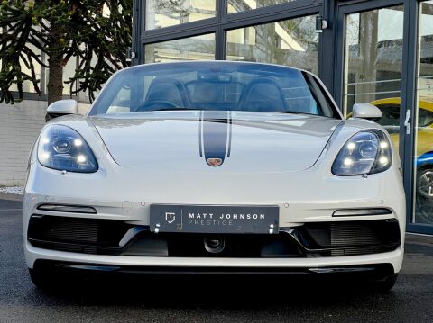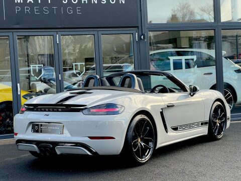 Just Arrived! we are delighted to present this amazing 2024 Porsche Boxster Style Edition, having covered miles from new. I cannot express how high the level of quality on offer really is. This vehicle will stand scrutiny from even the most discerning buyer, it really is that impressive and has clearly been cherished by the only owner who specified the car to perfection. This example is not yet due the first requisite service until 30/07/2026 and s covered by Porsche Manufacturers warranty until 30/07/2027. Not withstanding the perfect provenance and unmatched condition, it is the factory upgrades which make this car stand out above competitor examples. The list of enhancements reads as follows: Adaptive Radar Cruise Control, Burmester High End Surround Sound, Porsche Entry and Drive, LED Main Headlights Including PDLS, Sport Chrono Package inc Mode Switch, Blind Spot Monitoring System, Fully Electric 14 Way Sports Seats with Memory Package, Roll Over Bars in Black High Gloss, Porsche Decals in Black, Door Handles in High Gloss Black, Rear Apron Painted, Sport Design Package in Black High Gloss, Full Leather including Leather Dashboard, Leather Door cards, Leather Centre Console all with Contrast Crayon Stitching, 718 Logo in Black High Gloss, Reversing Camera System, Wheels Painted in Black High Gloss, Rear Side Intakes in Black High Gloss and so much more besides. Please do not hesitate to call in connection with this incredibly high quality sports car, you will be so glad you did. This is the example you NEED on your driveway.