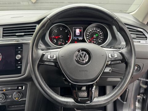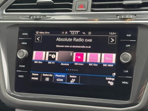 This 2020 Volkswagen Tiguan Allspace TDI Match presents an exceptional opportunity with its remarkably low mileage of just 12,800 miles and a single owner from new. This Euro 6 compliant, 2.0 litre diesel engine model offers seven seats, making it a versatile choice for families. It comes equipped with the Discover Navigation Infotainment System featuring Bluetooth connectivity, and Car Net App Connect which seamlessly integrates your smartphone with Android Auto and Apple CarPlay. For convenience, it includes a Dusk Sensor for automatic driving lights and 3Zone Electronic Air Conditioning, ensuring comfort for all occupants with independent rear climate control and automatic air recirculation.
