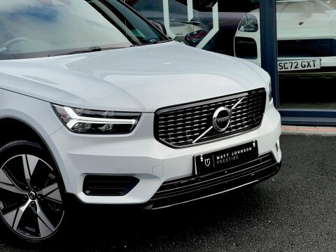Previously supplied by ourselves, we are delighted to offer this beautiful XC40 Once more. This 2021 Volvo XC40 T4 R Design offers an exceptional ownership proposition with its remarkably low mileage of just 17,700 miles. This Euro 6 compliant plug in hybrid combines a 1.5 litre petrol engine with electric power, providing an efficient and responsive driving experience. The R Design trim level ensures a sporty aesthetic and a host of desirable optional features, including the Climate Pack which offers heated front a rear seats and a heated steering wheel for ultimate comfort and Park assist making parking that much simpler. The car has previous Volvo Service history documents, with the next now due and will be completed in house prior to release as part of out pre-sale preparation! Further enhancing your journeys, this XC40 is equipped with Park Assist, featuring a rear camera and rear parking sensors to make manoeuvring effortless. Automatic LED headlights with active high beam and distinctive day running lights illuminate your path, while the Electronic Climate Control with Clean Zone Air Quality System ensures a fresh cabin environment. You will also appreciate the generous boot space, making it a practical choice for everyday life and longer trips alike.